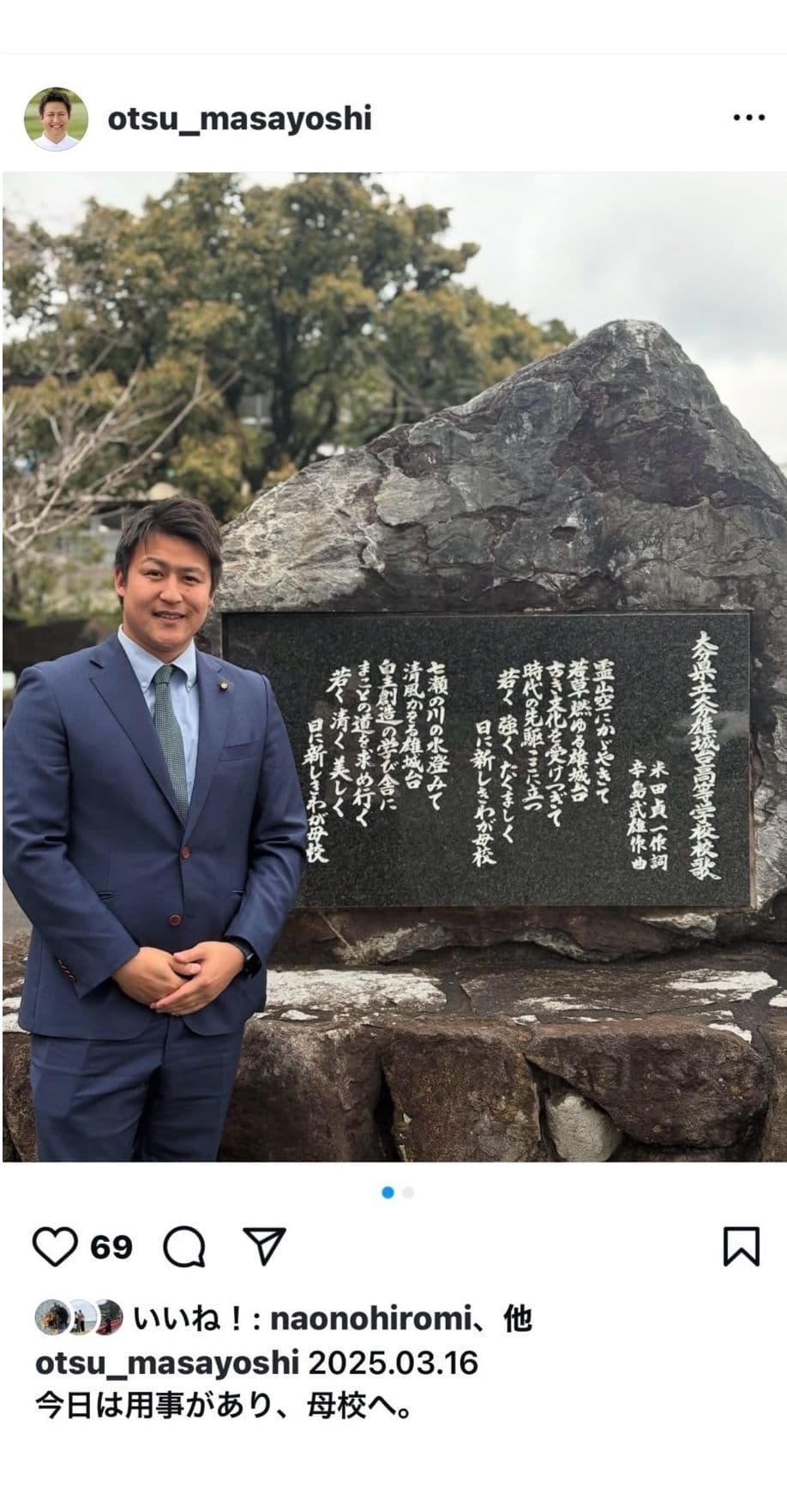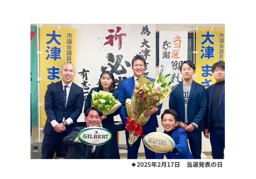 | 大津將嘉(おおつ まさよし) 1997年(平成9年)生まれの現在28歳 大分市議会議員(1期目) 趣味:ラグビー、橋梁見学 |